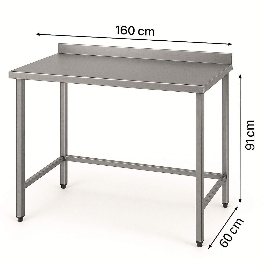 Taban Rafsız Paslanmaz Krom Mutfak Tezgahı, 160 X 60 X 85 cm, 430 Çelik